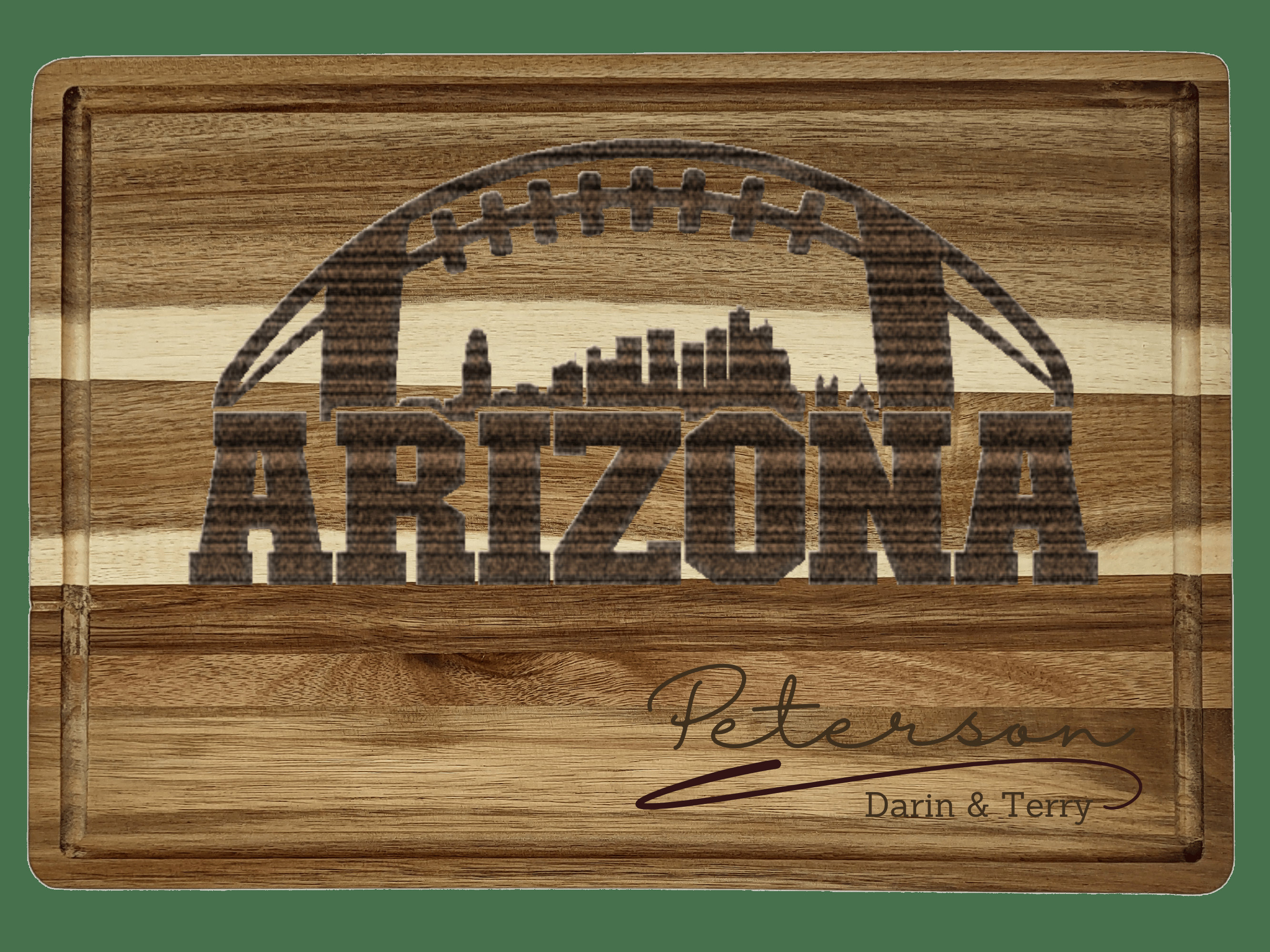 This isn’t just a cutting board — it doubles as a charcuterie board, serving tray, or display piece. Perfect for tailgating, Super Bowl spreads, or everyday kitchen prep, it showcases your Arizona pride with every use.