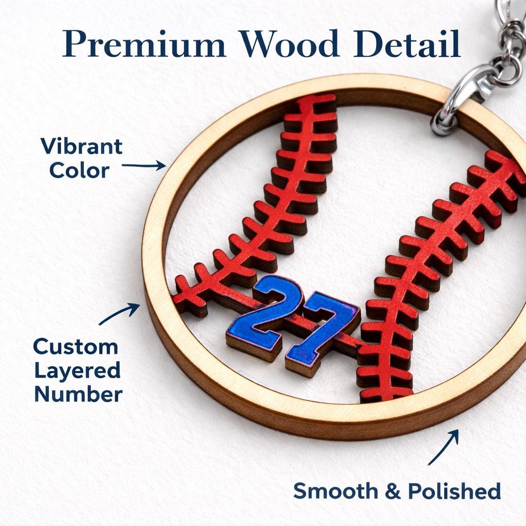 - Durable Material: The hooks are made of a durable metal alloy that's gentle on the skin. The baseball elements are skillfully cut from Baltic Birch, ensuring quality and authenticity.
