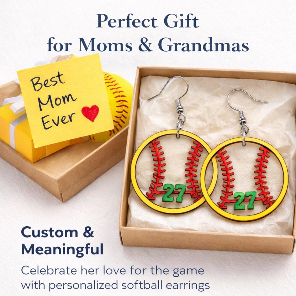 These custom earrings feature your chosen jersey number and team color, making them a perfect accessory for proud moms, grandmas, siblings, and players. Whether you’re cheering from the stands or gifting a special keepsake, these earrings are a meaningful way to support your team in style.