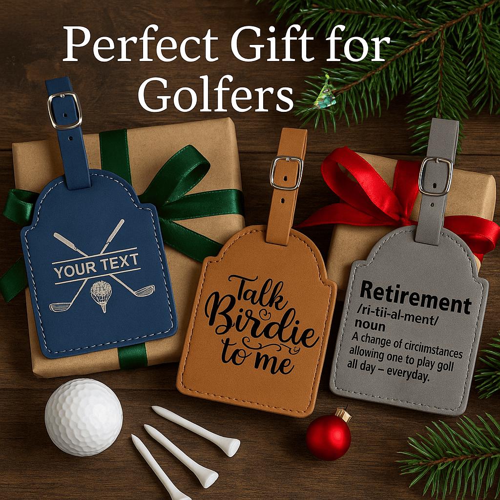 Looking for a fun, practical, and personalized golf gift this holiday season? Our custom engraved golf bag tag is a top-rated hit for Dads, Grandpas, Coaches, Groomsmen, and Golf Buddies alike! Each durable tag keeps your tees handy and adds a stylish touch to any golf bag.