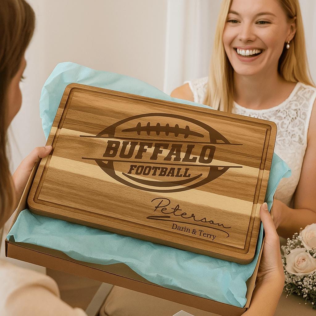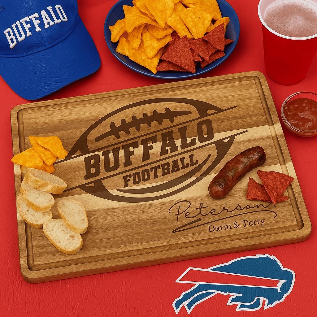 Looking for the perfect gift for the ultimate Buffalo football fan? 🦬 Whether it’s for game-day spreads, a Super Bowl party, or a thoughtful holiday present, this Buffalo Football Custom Cutting Board is a winning choice!