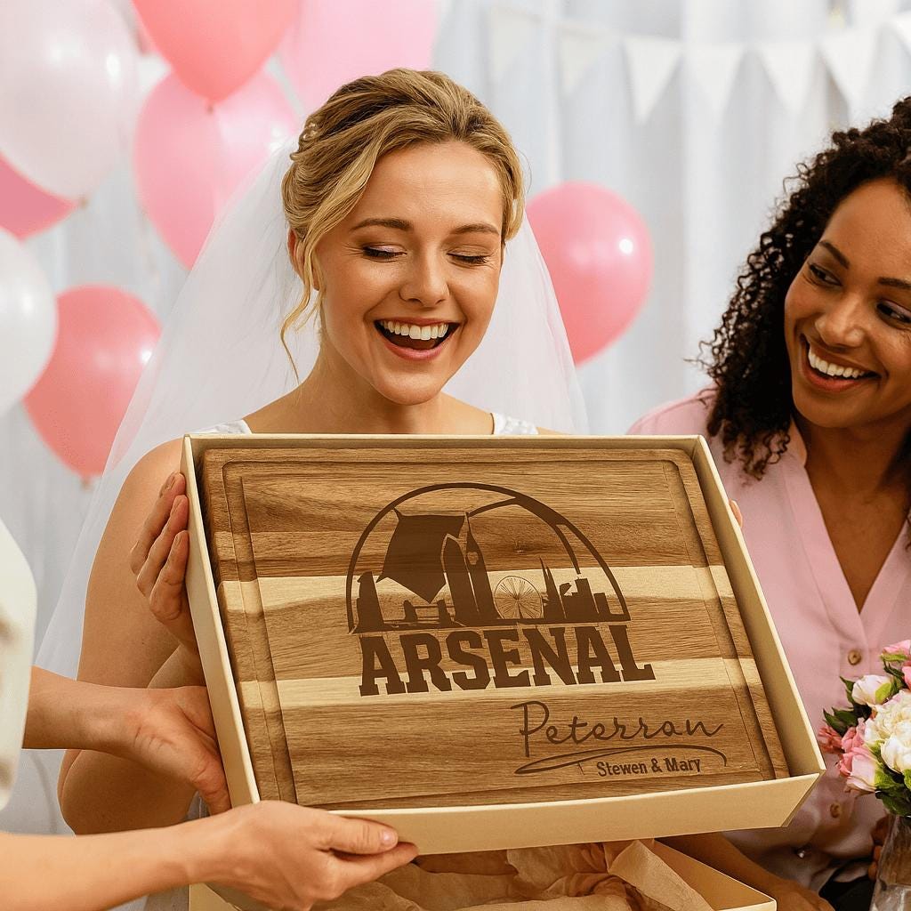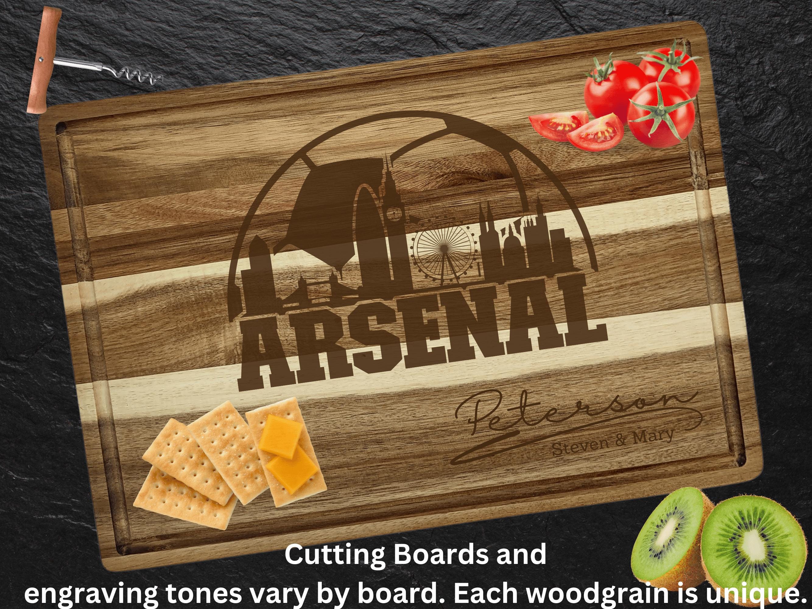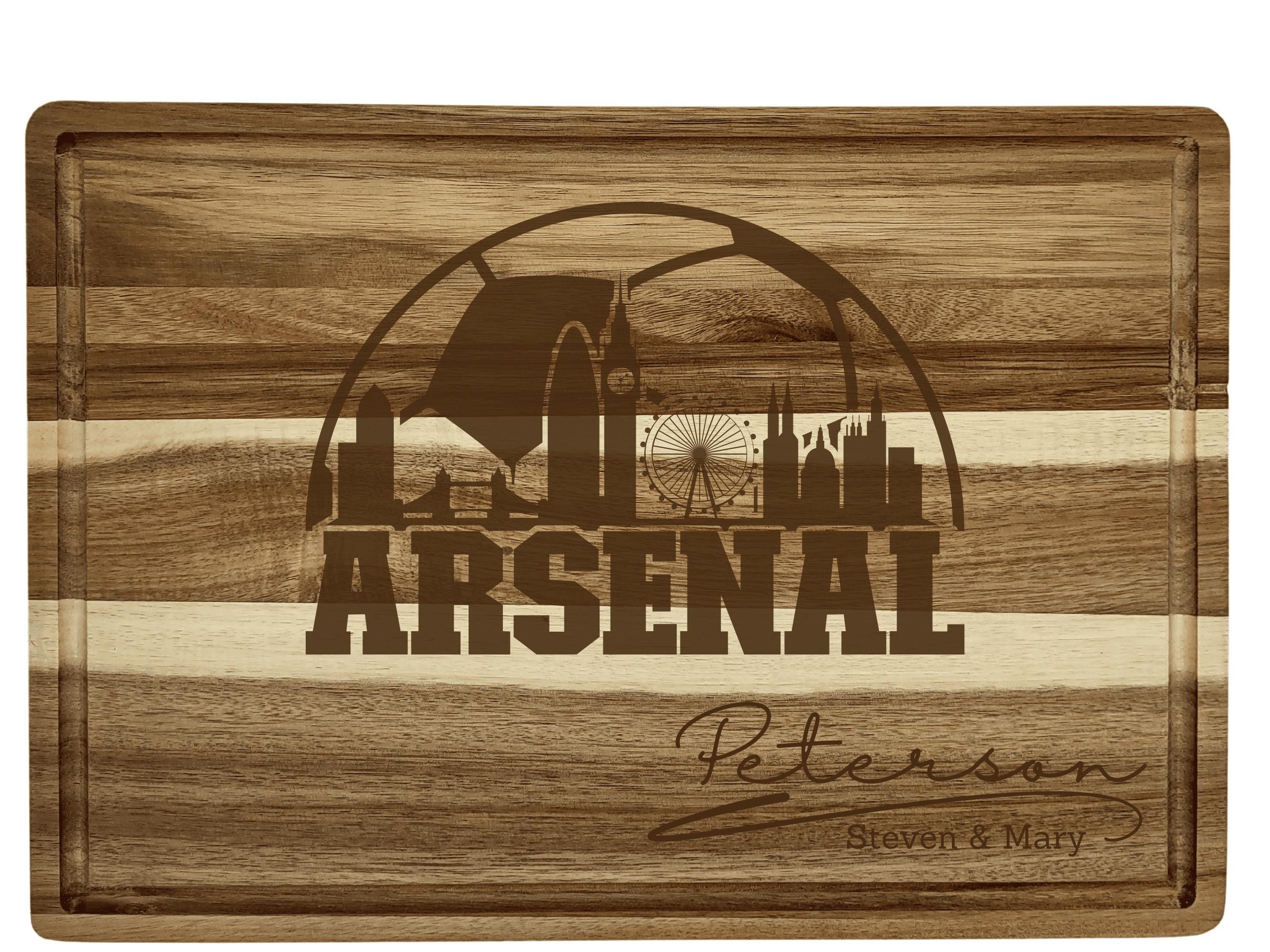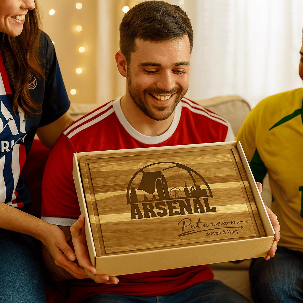 Looking for the perfect gift for an Arsenal FC fan? This personalized acacia wood cutting board combines craftsmanship, functionality, and football pride in one unforgettable keepsake. Whether it’s for everyday use, a game-day snack spread, or a Premier League watch party, this engraved board makes a standout addition to any kitchen or fan cave.