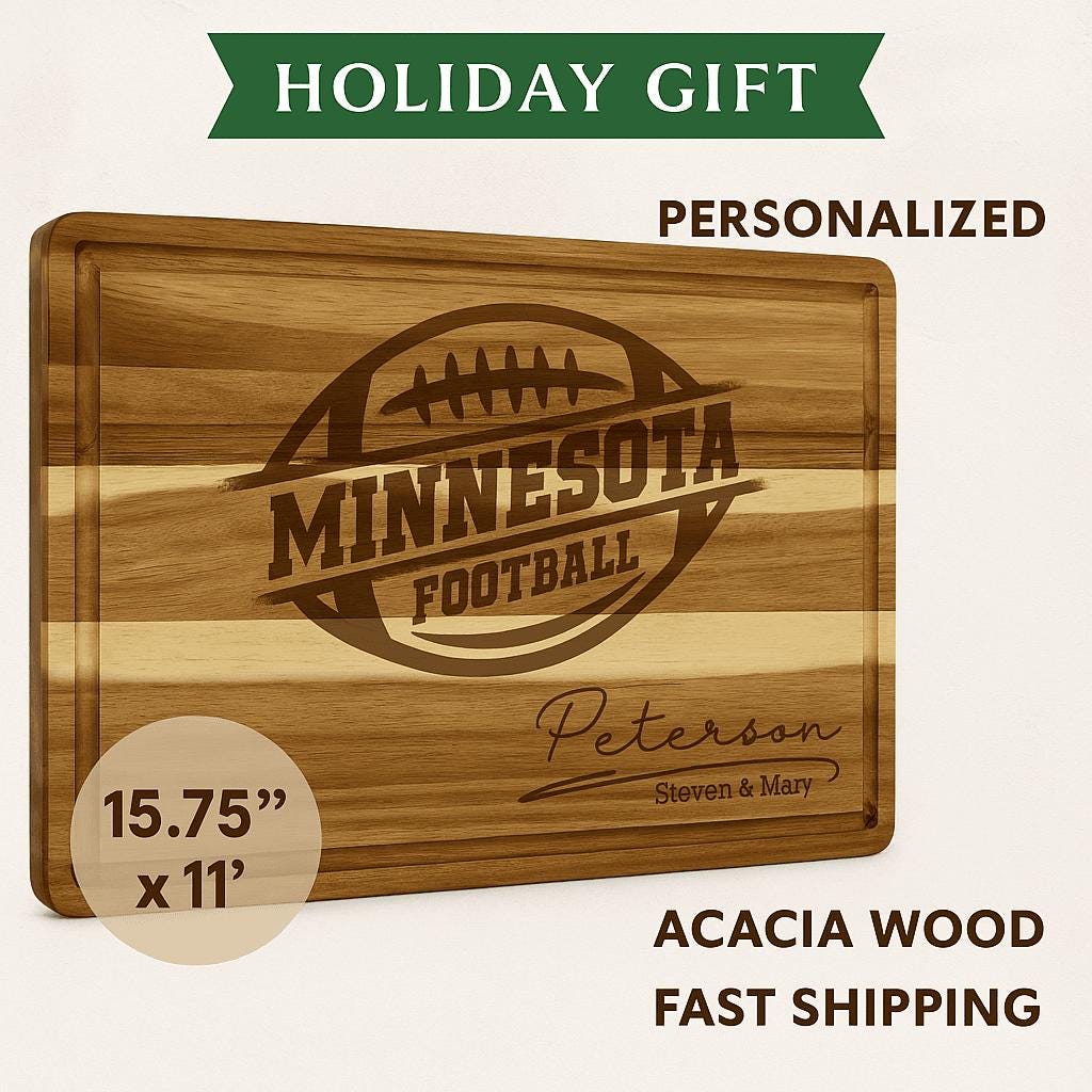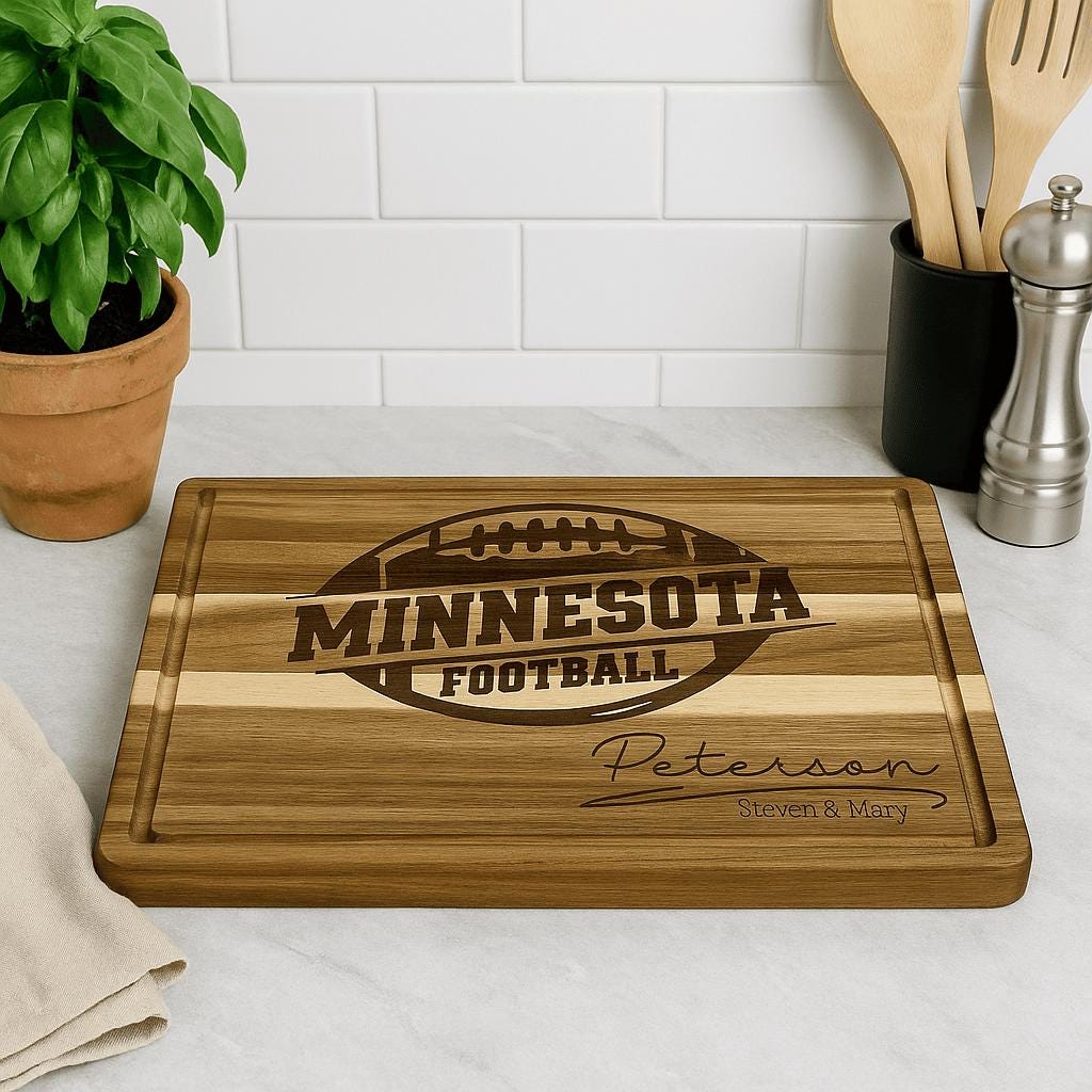 Looking for the perfect gift for the ultimate Minnesota football fan? 🦬 Whether it’s for game-day spreads, a Super Bowl party, or a thoughtful holiday present, this Minnesota Football Custom Cutting Board is a winning choice!