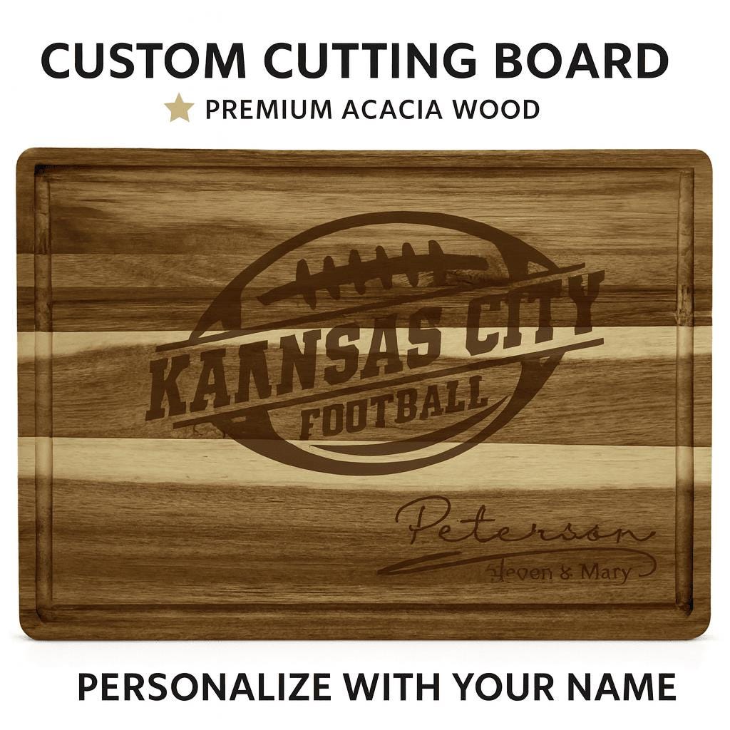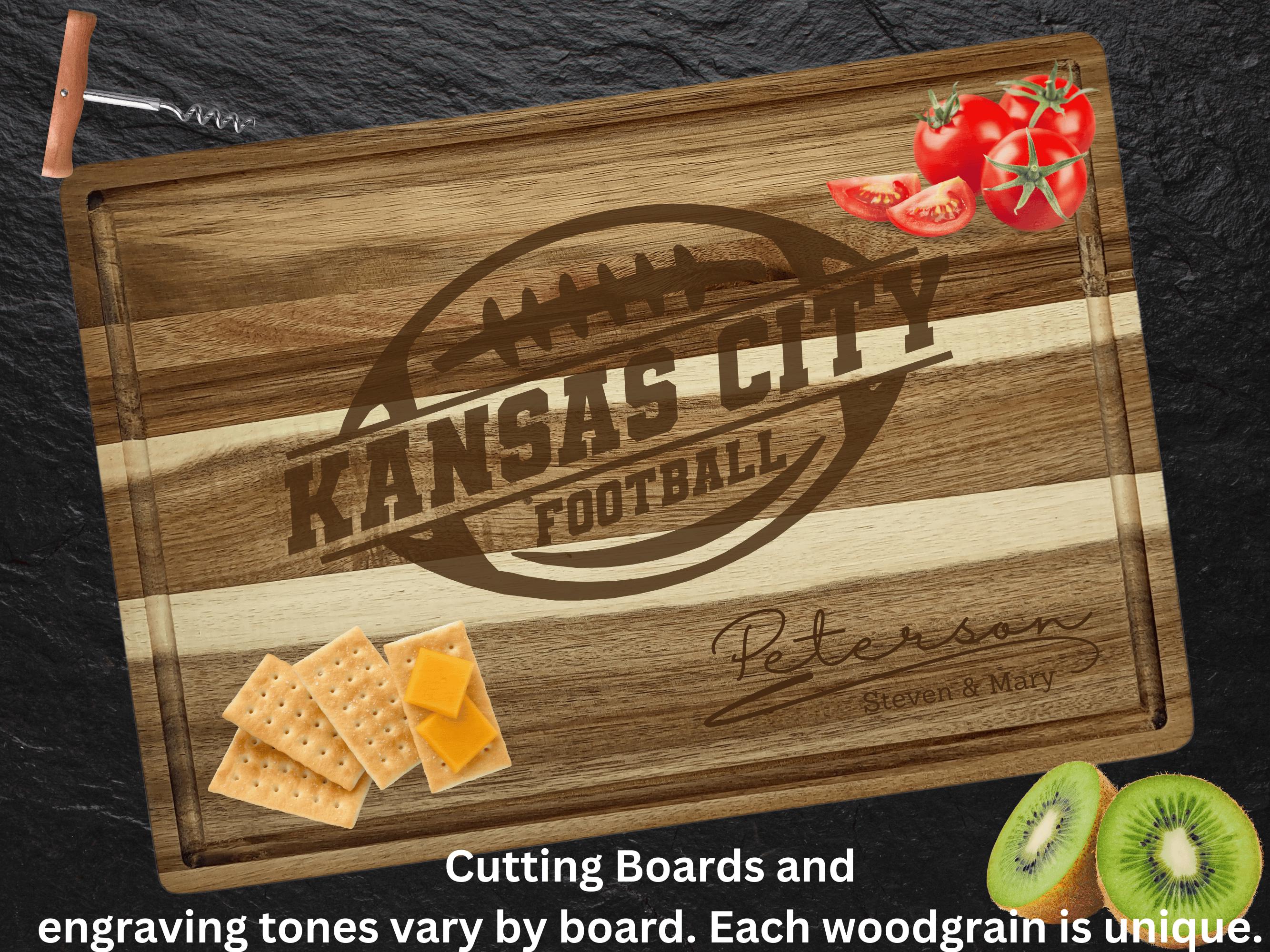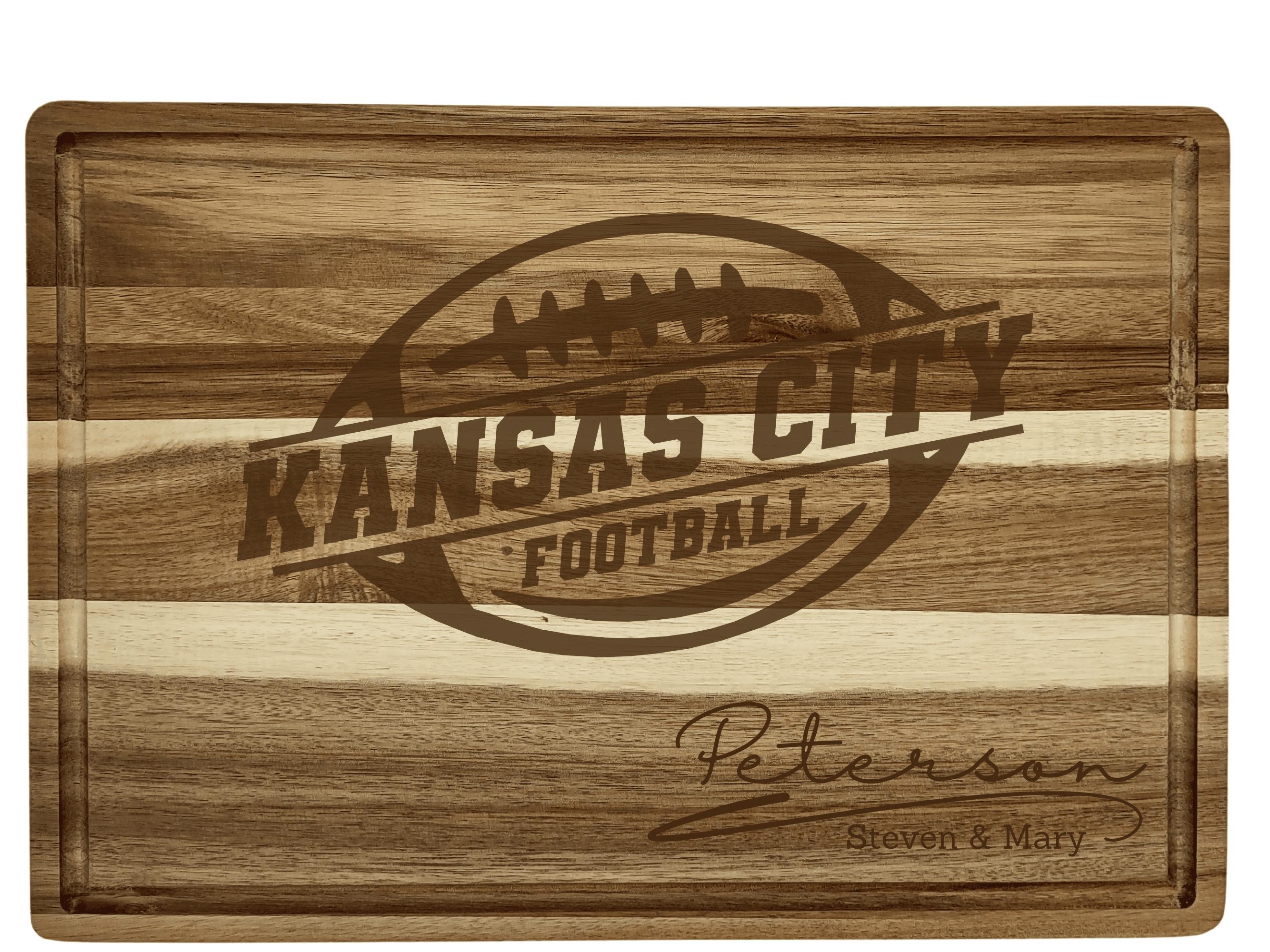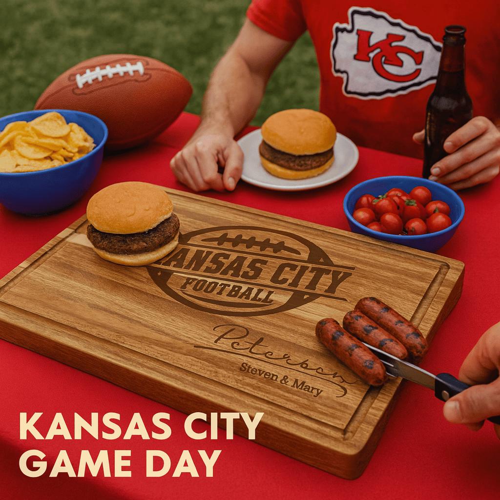 Looking for the perfect gift for the ultimate Kansas City football fan? Whether it’s for game-day spreads, a Super Bowl party, or a thoughtful holiday present, this Kansas City Football Custom Cutting Board is a winning choice!