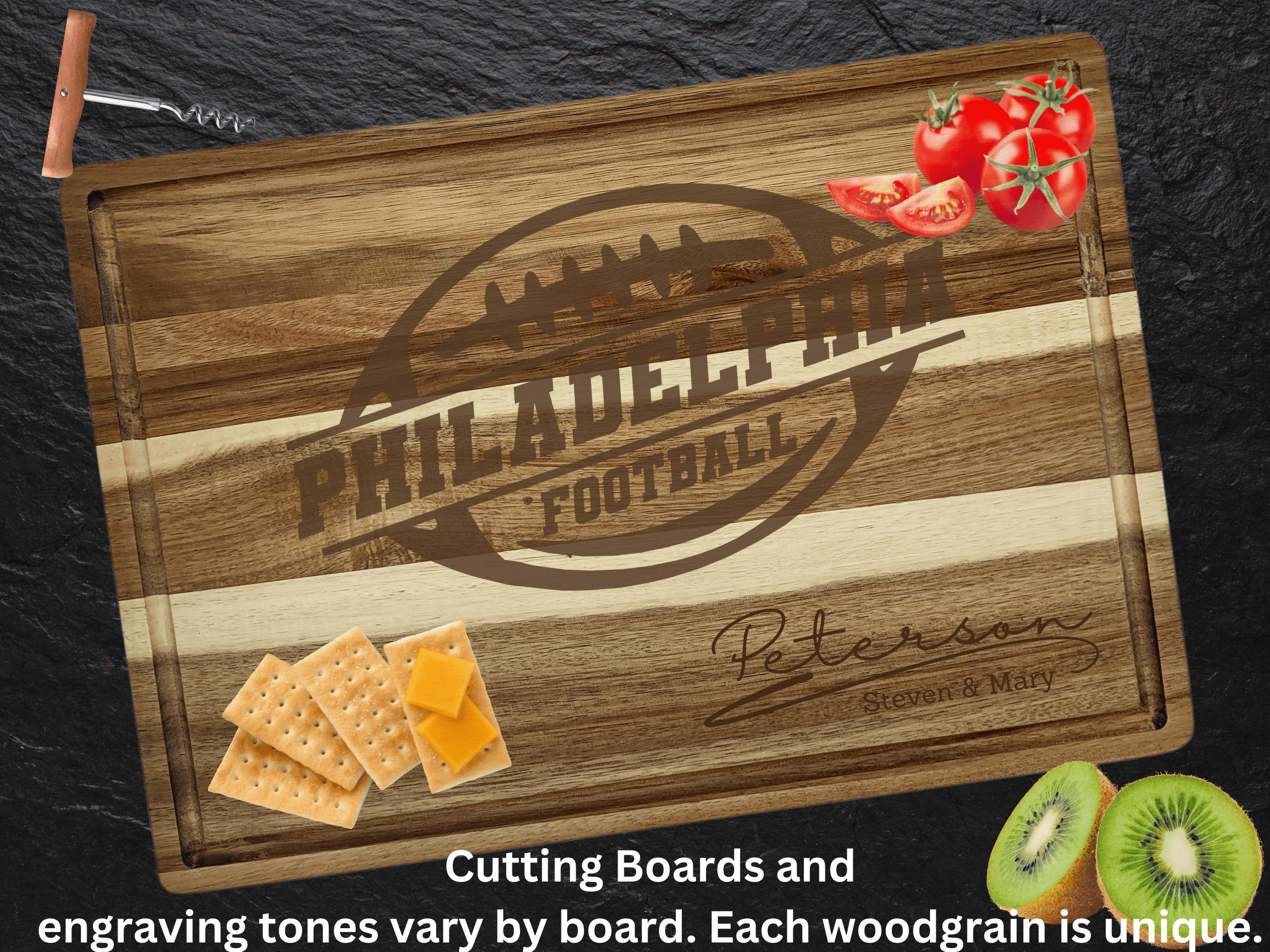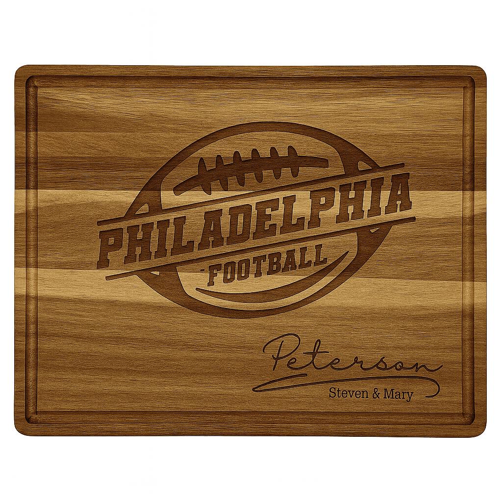 Looking for the perfect Philadelphia football gift? This custom engraved acacia wood cutting board is the ultimate keepsake for fans who love game days, tailgates, and kitchen gatherings. Crafted from durable, eco-friendly acacia wood and laser-engraved with precision, it’s a stylish, functional, and personalized gift that lasts season after season.