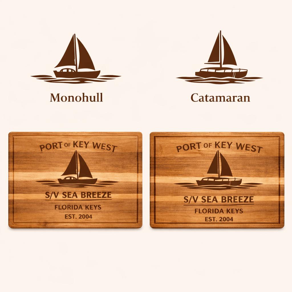 Bring the spirit of the sea into your galley with a personalized sailboat cutting board engraved with your boat name, home port, and established year. Designed for sailors, yacht owners, and ocean lovers, this premium acacia wood board is both a functional galley essential and a meaningful keepsake.