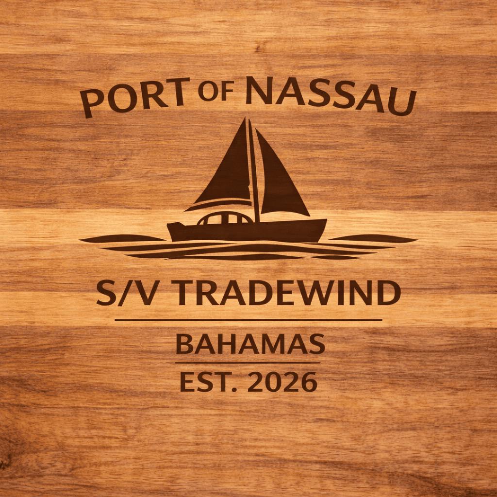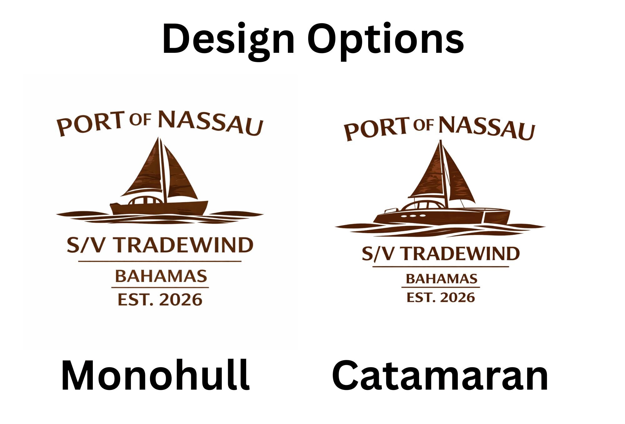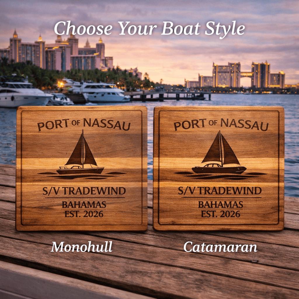 Custom engraved with your boat name, home port (Key West or any harbor), and established year.