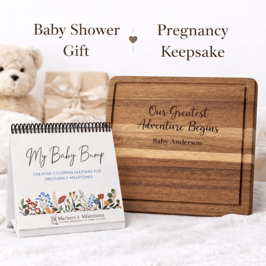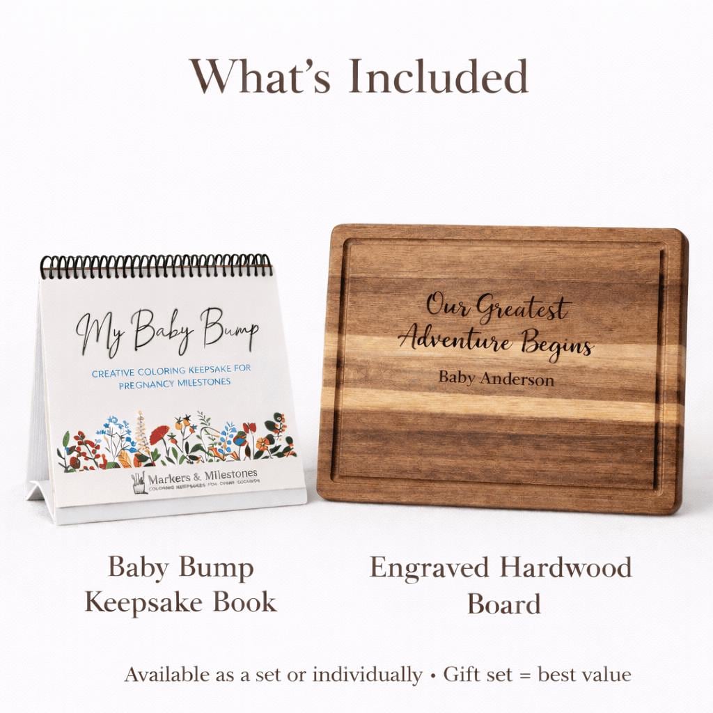 ✨ Baby Bump Pregnancy Keepsake Book & Personalized Cutting Board Gift Set ✨
