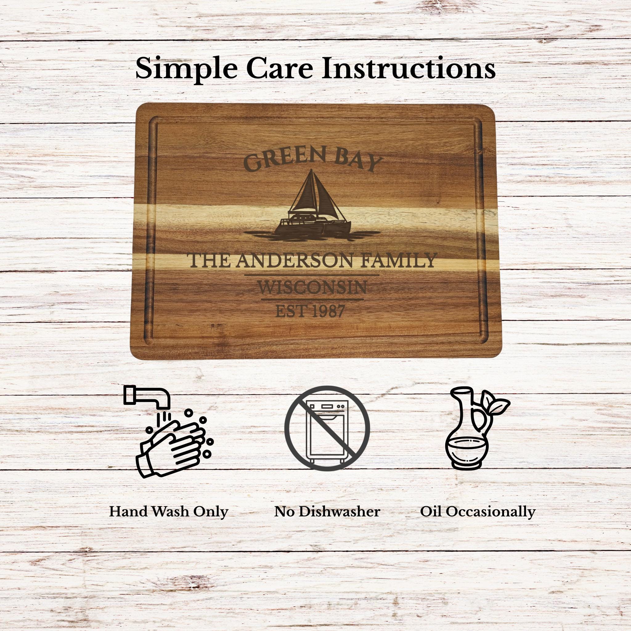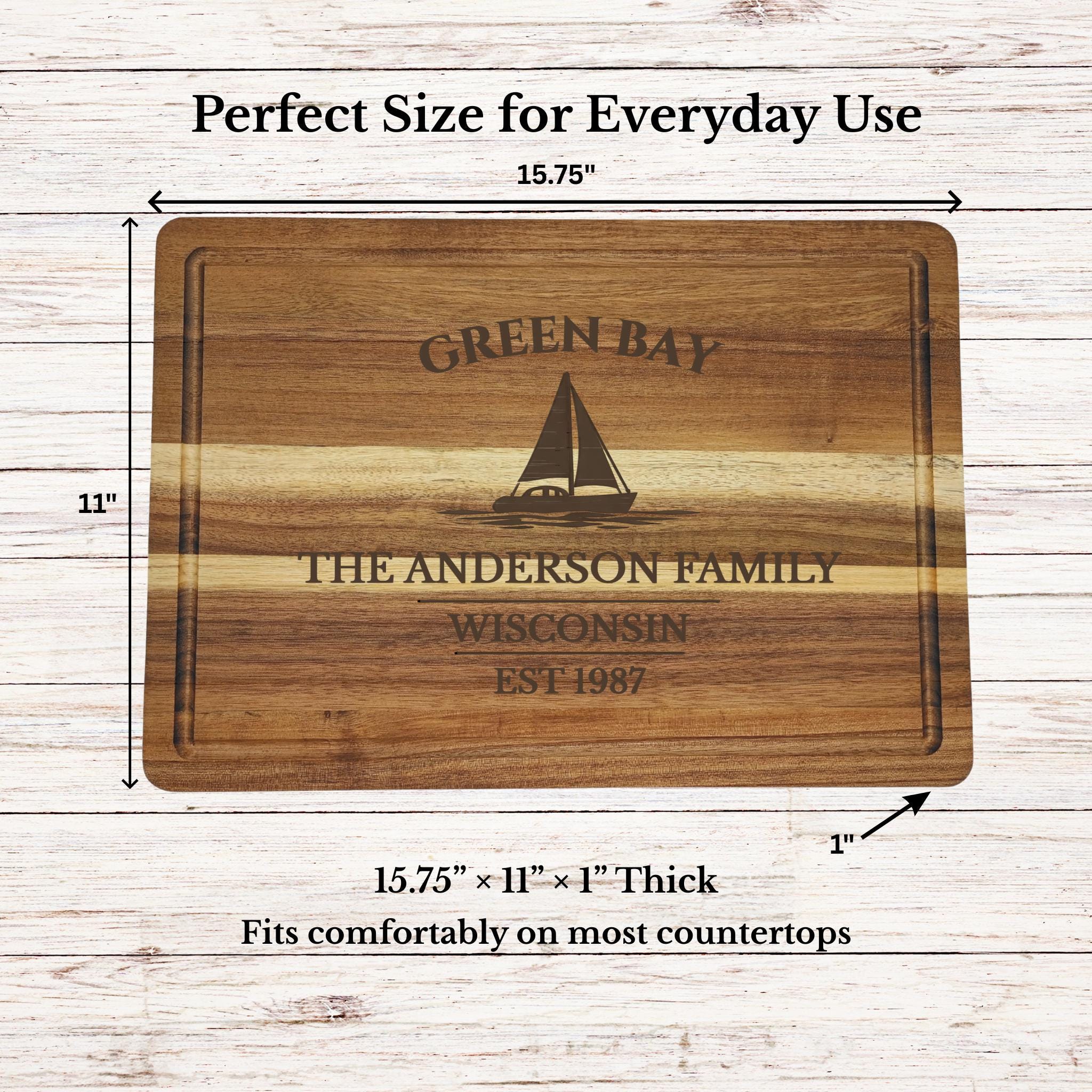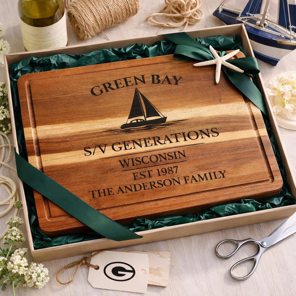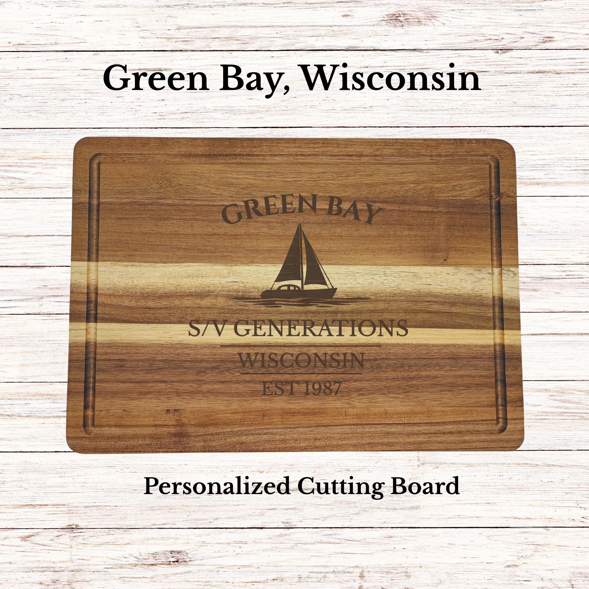 Bring the pride and tradition of Green Bay into your home with a personalized sailboat cutting board inspired by one of Wisconsin’s most recognizable waterfront communities.