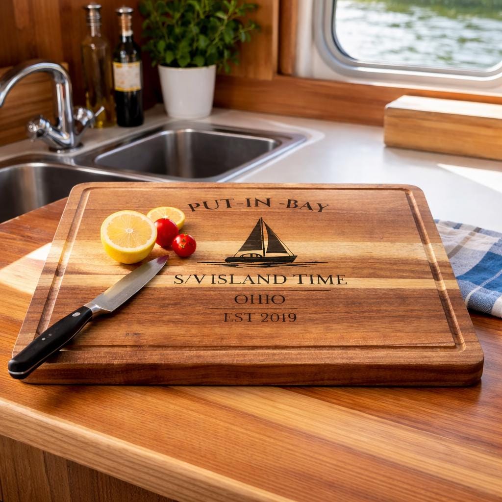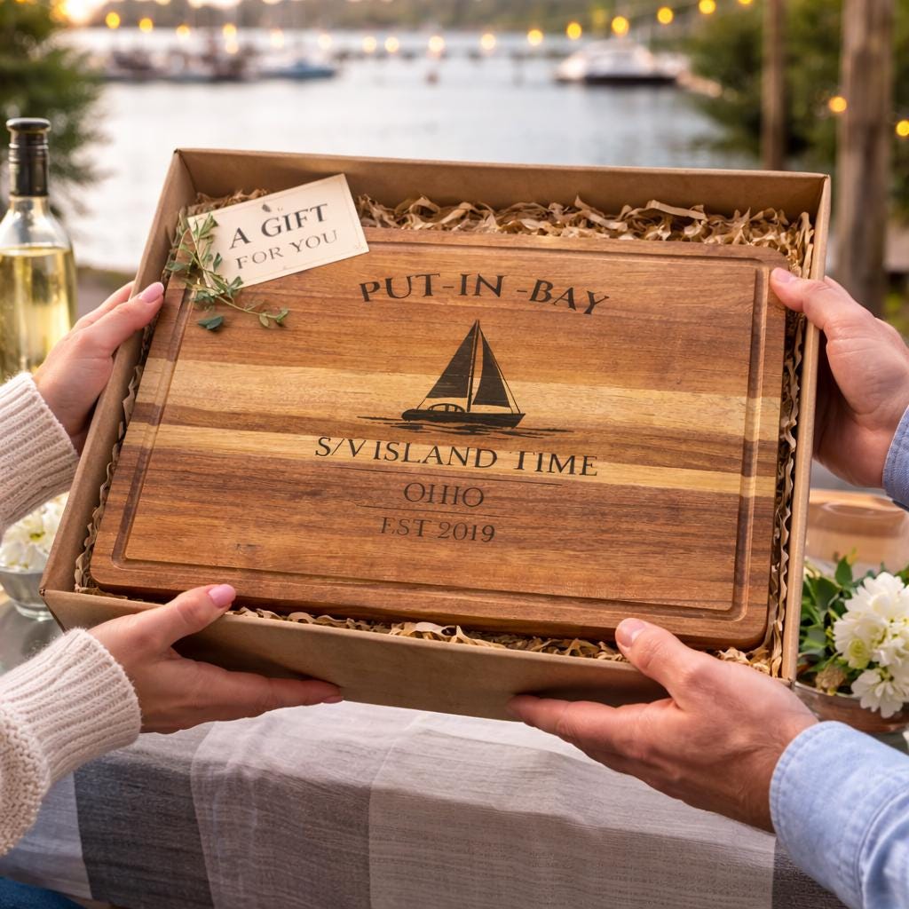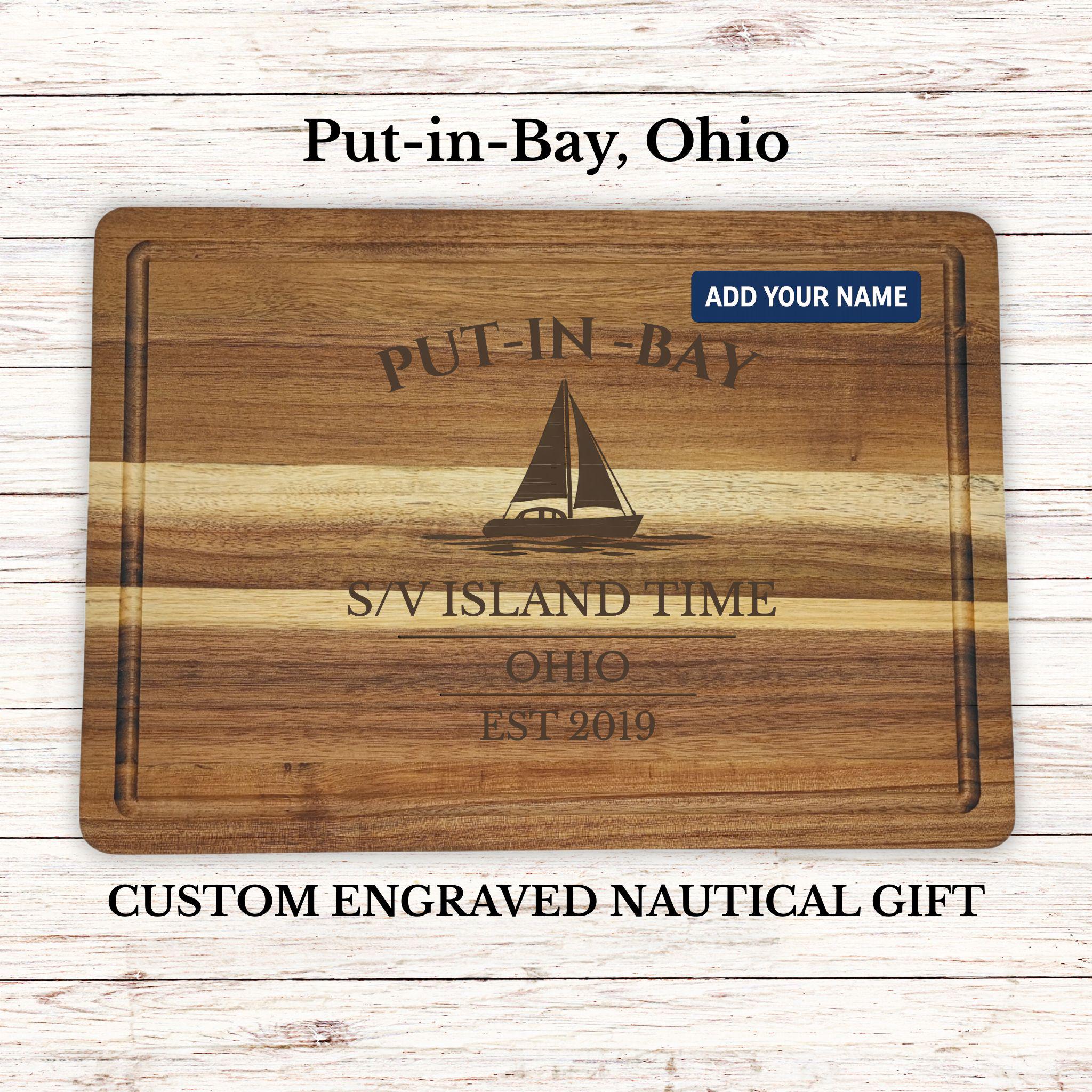 Bring the energy and waterfront spirit of Put-in-Bay into your home with a personalized sailboat cutting board inspired by one of Lake Erie’s most iconic island destinations.