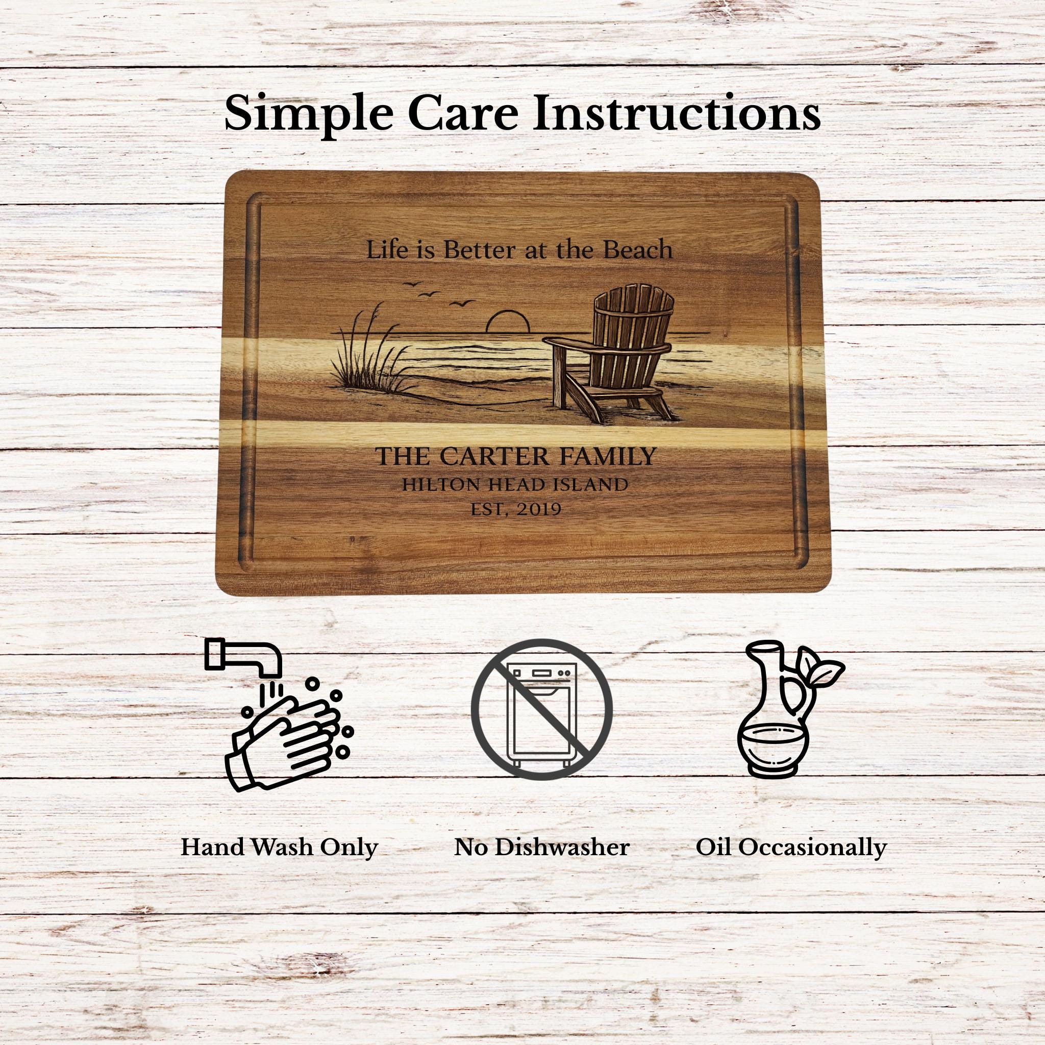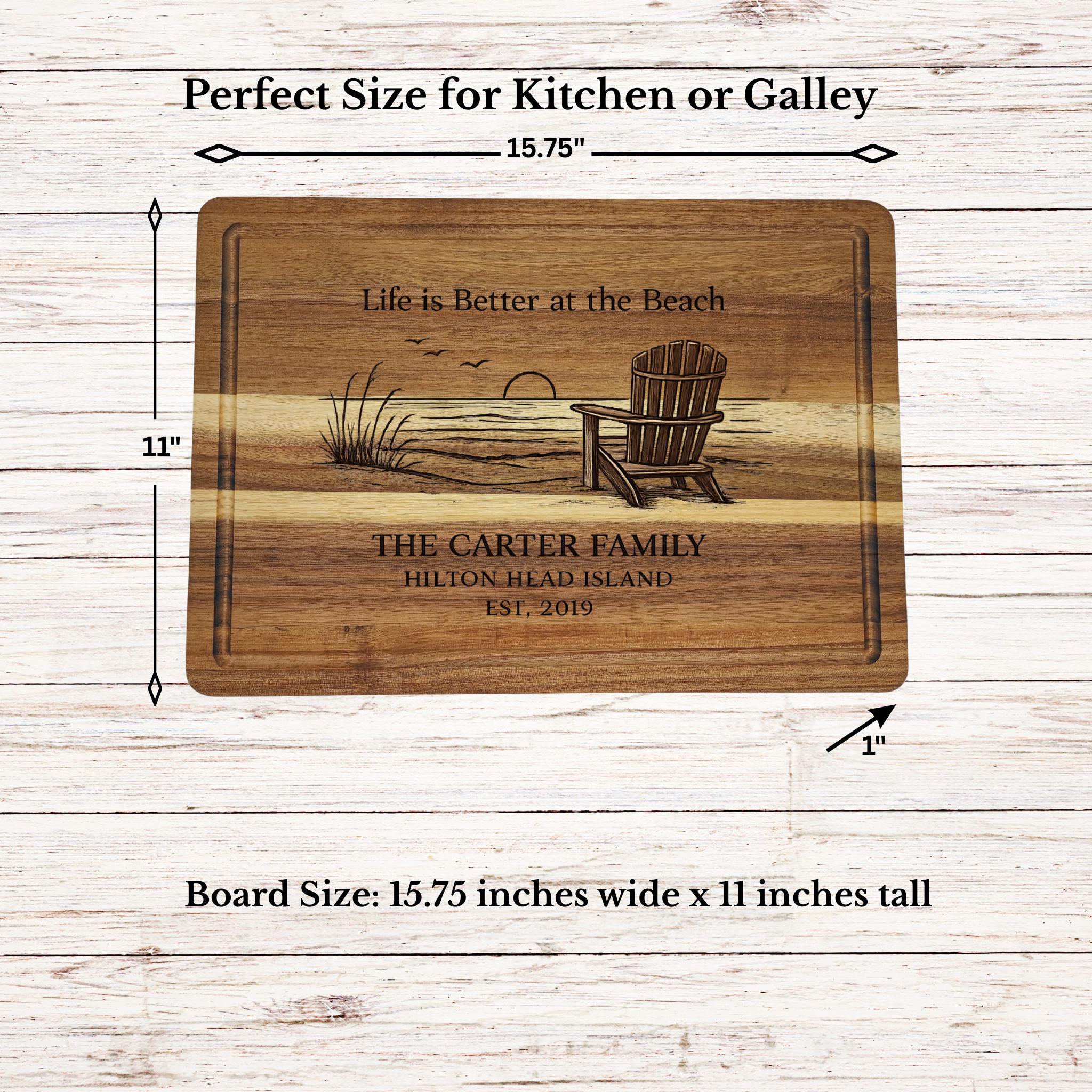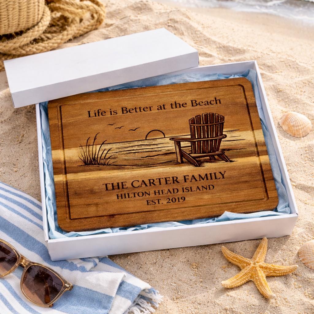 This custom cutting board makes a meaningful gift for weddings, housewarmings, anniversaries, and anyone who loves beach house or coastal decor.