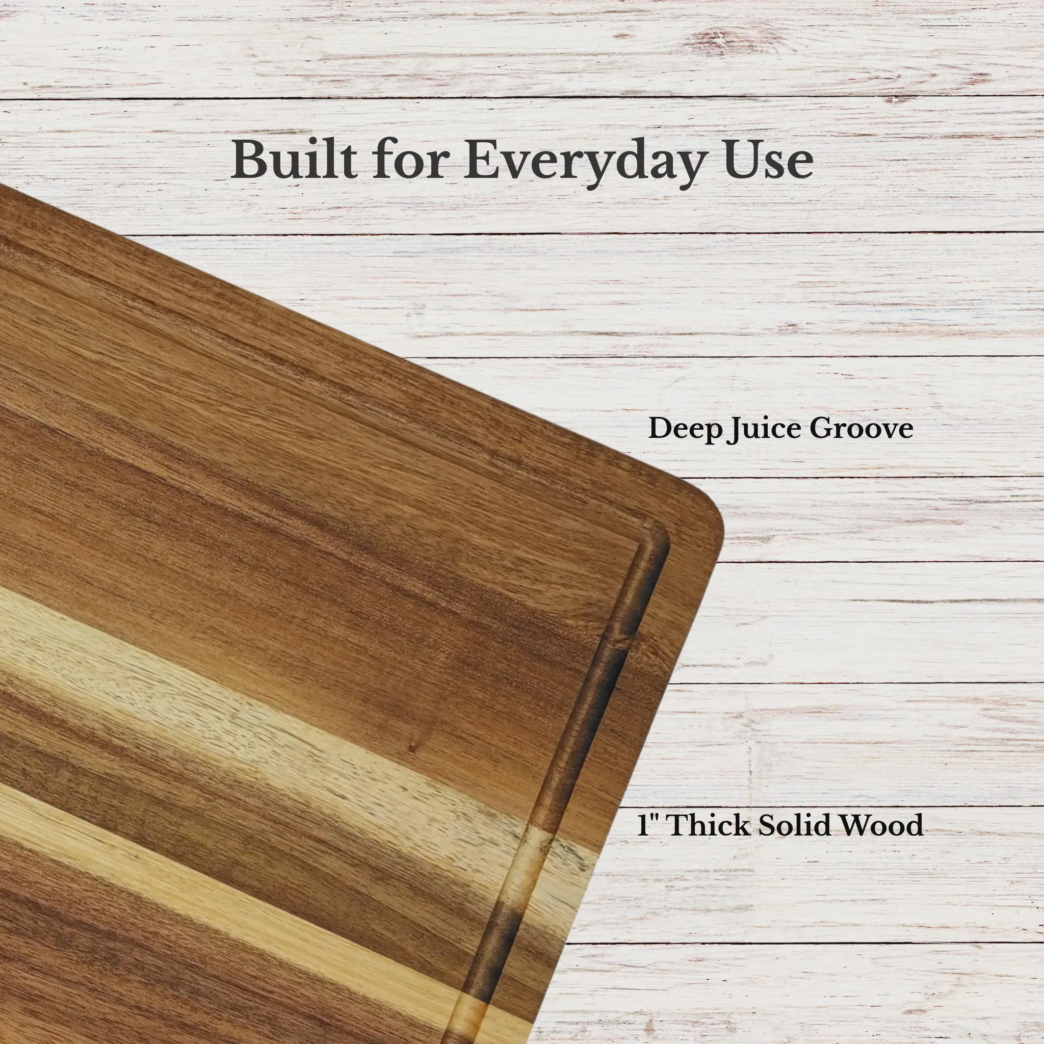 Each board is crafted from solid acacia wood, known for its durability and rich natural grain.